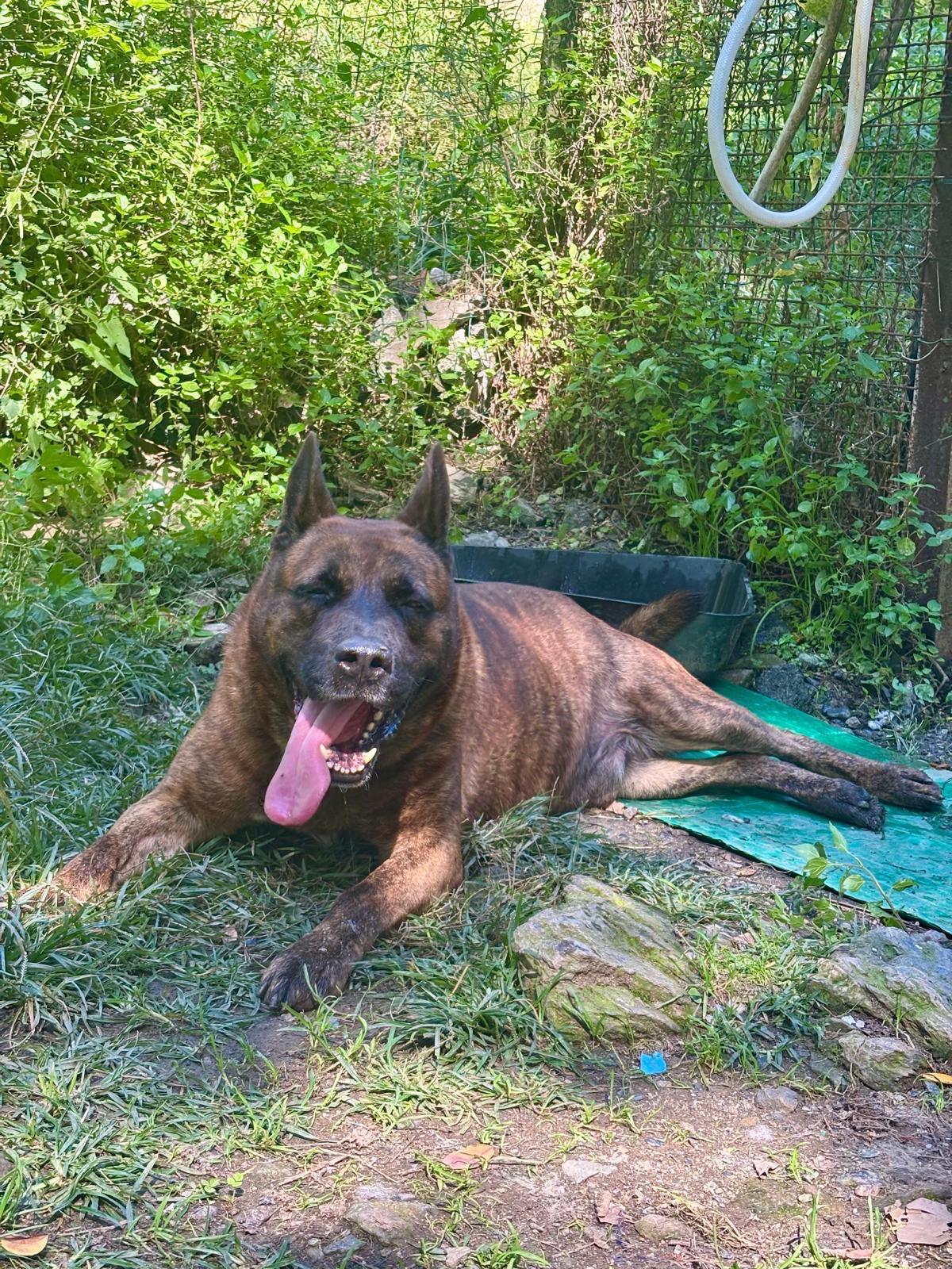 È grande, grosso e tenerone: adora il contatto fisico, le coccole, giocare e rotolarsi nell’erba.
