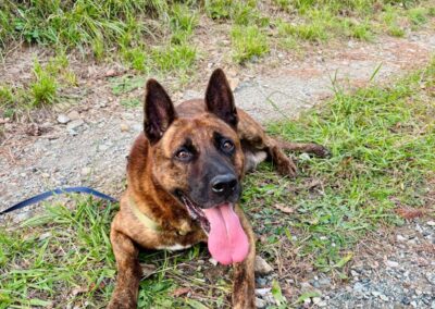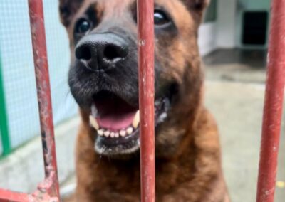 Gli piace la macchina, si affida totalmente ai suoi volontari di riferimento, ascolta molto ed è ubbidiente.