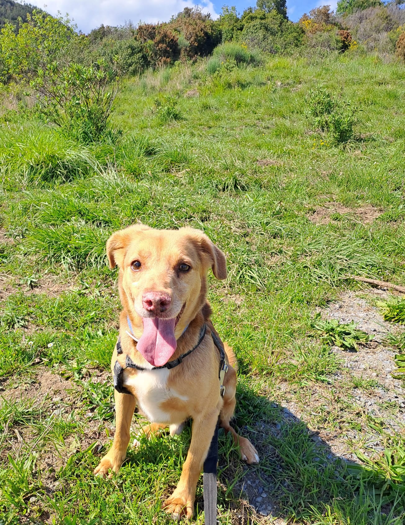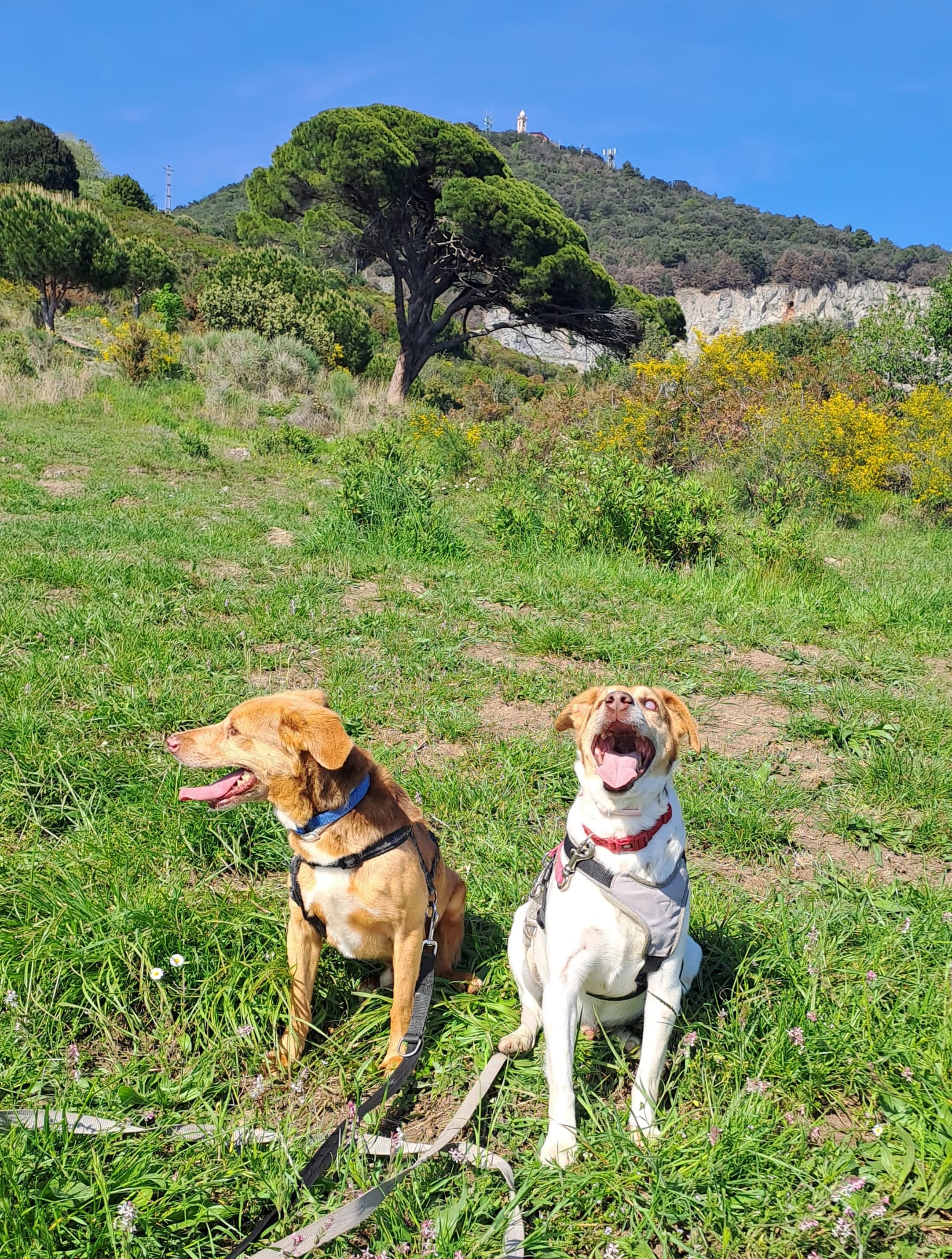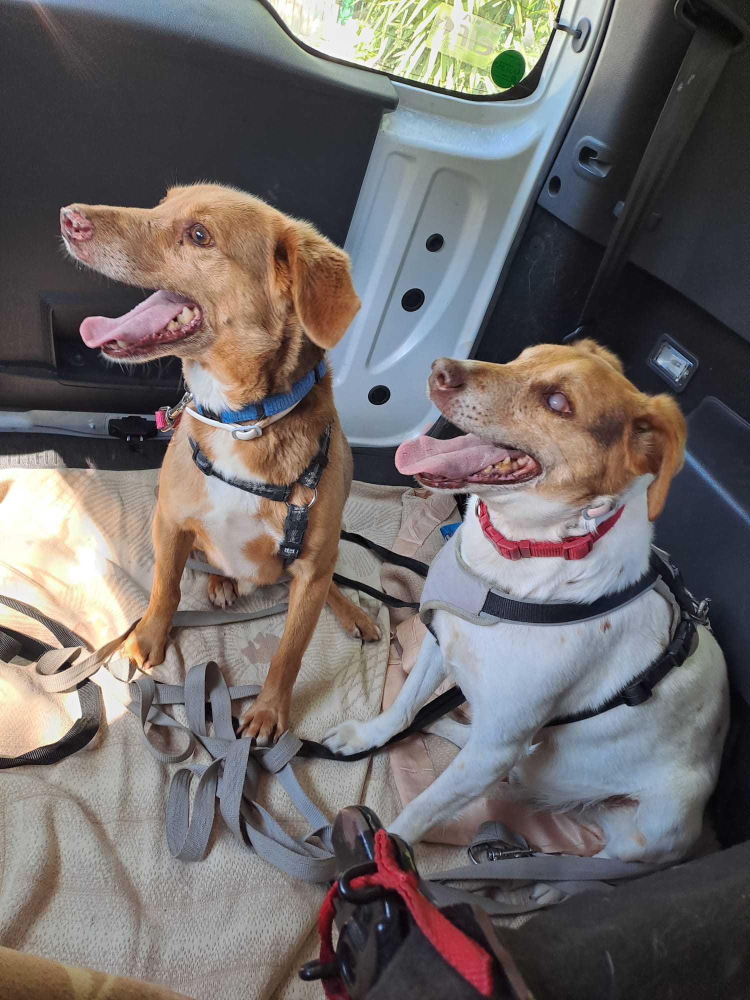 Salgono in macchina anche se non autonomamente, indossano la pettorina e sanno passeggiare al guinzaglio.