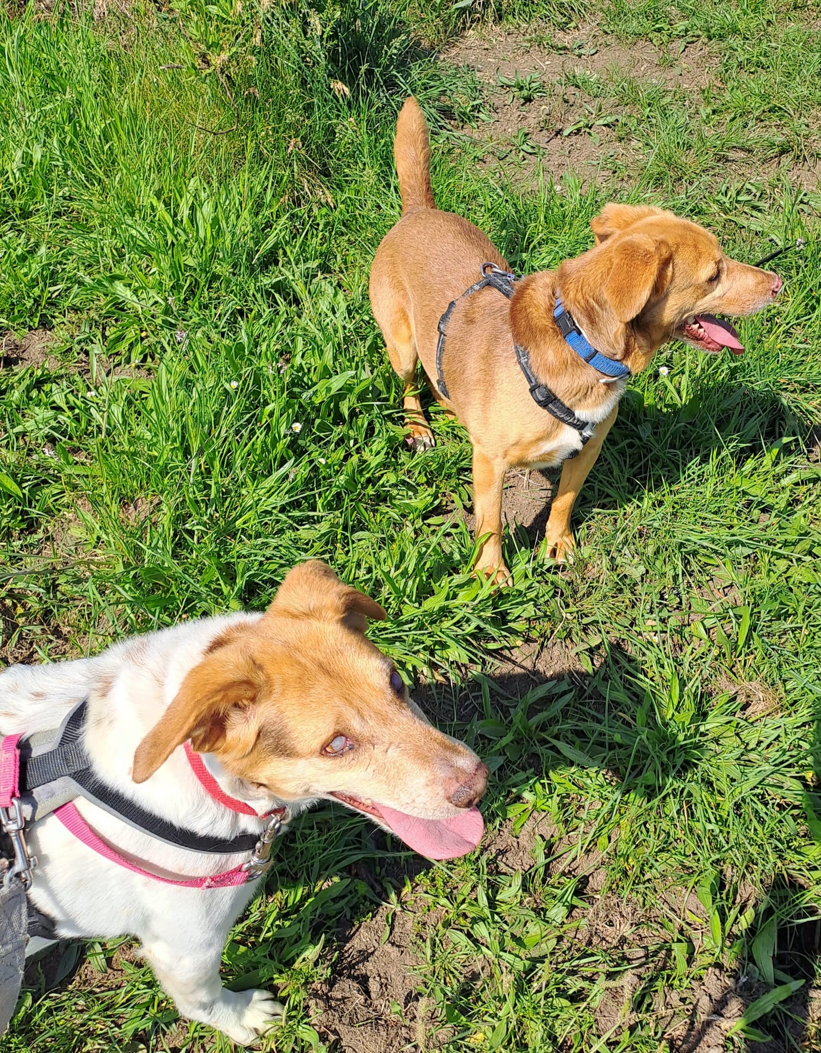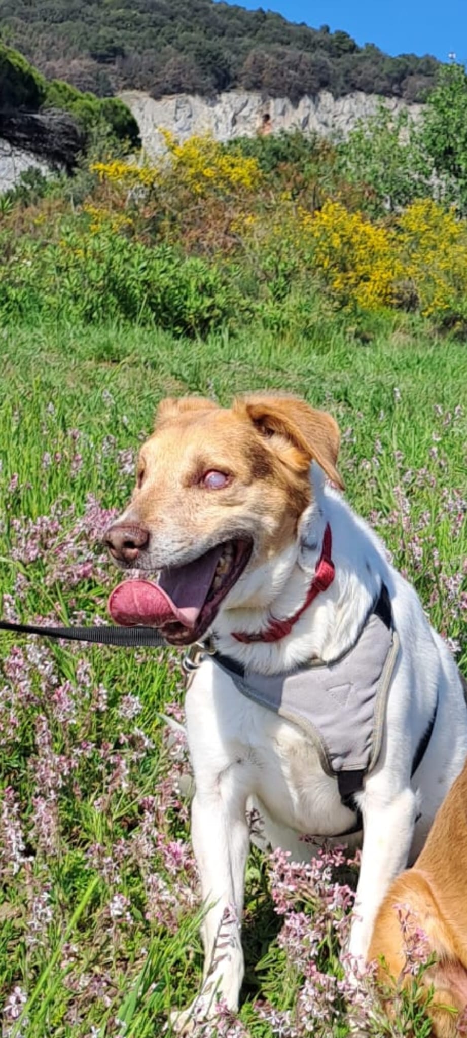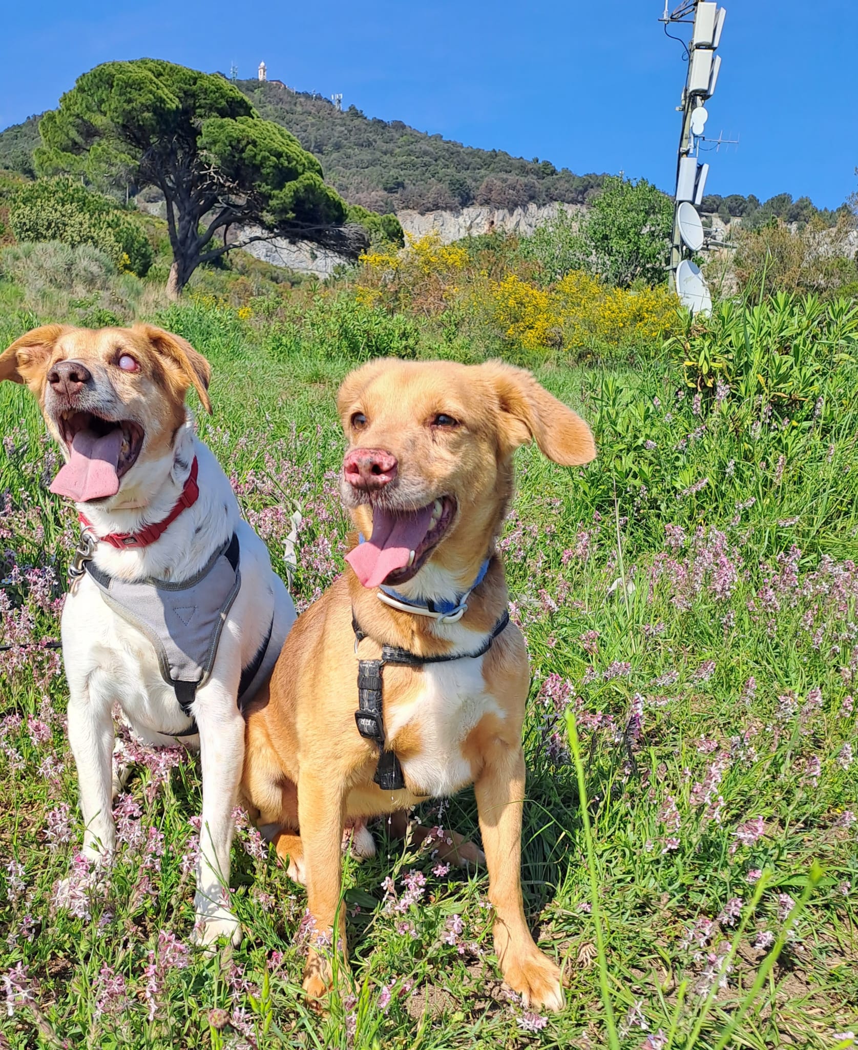 Salgono in macchina anche se non autonomamente, indossano la pettorina e sanno passeggiare al guinzaglio.