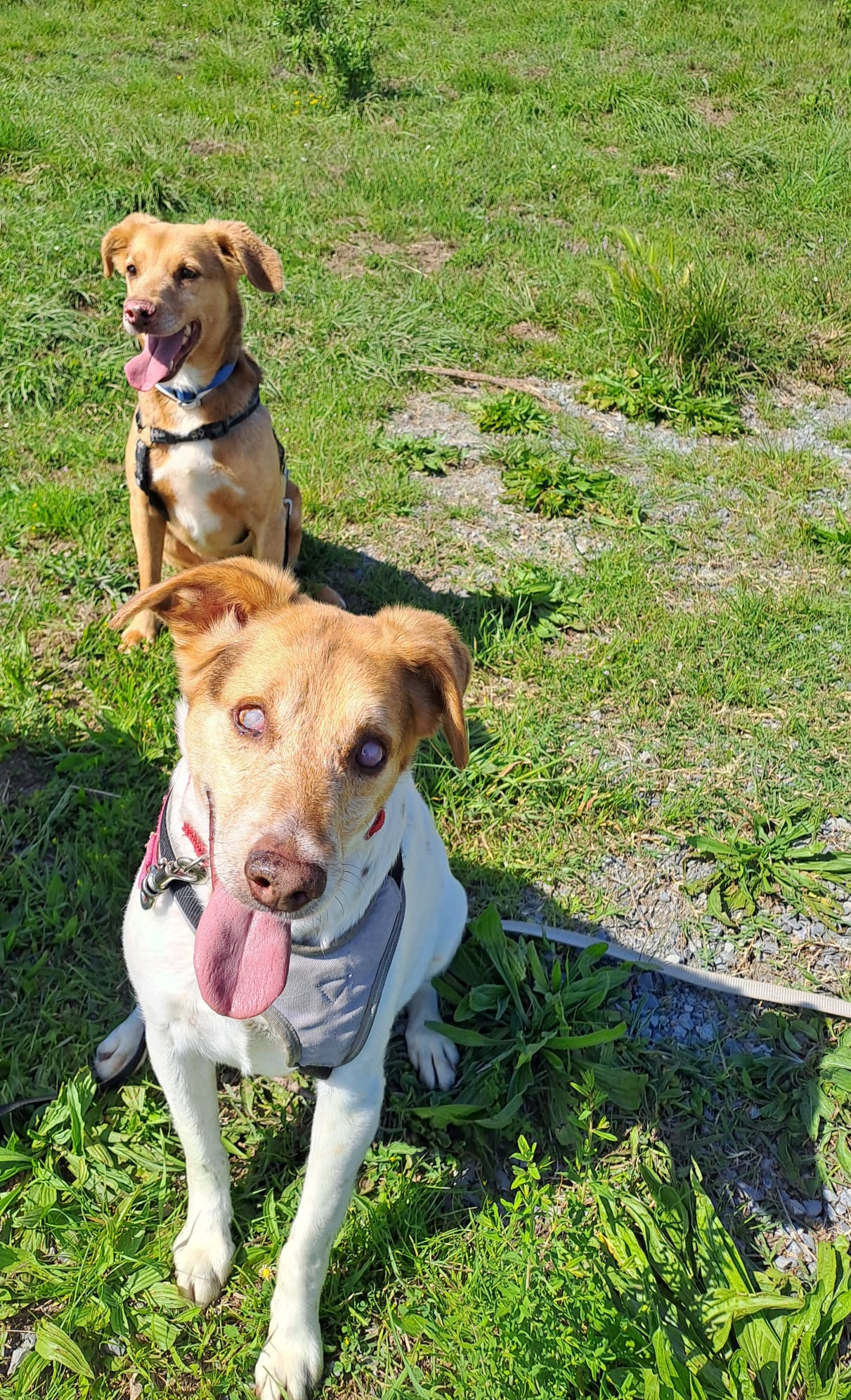Lilo e Hermann sono due meticetti, pesano circa 12-14kg. Sono arrivati in canile nel 2015 in seguito ad un sequestro di 48 cani tutti simili tra loro.. Quasi tutti hanno trovato una casa per sempre, loro no.. sono gli ultimi rimasti in canile a causa delle loro notevoli difficoltà a relazionarsi con gli umani.. fino all’anno scorso quando, dopo un attento, paziente e particolare lavoro alcuni volontari, coadiuvati dalle educatrici del canile, sono riusciti a fare breccia e finalmente hanno iniziato a godersi la vita fuori dal box. In passeggiata hanno un entusiasmo contagioso e adorano poter annusare tutti i profumi della natura, usano i loro piccoli tartufi nelle ricerche olfattive che i volontari preparano loro. Hanno imparato che le mani non sempre portano dolore.. Non sono più giovani e hanno qualche acciacco, Lilo è ipovedente, ma in passeggiata si trasforma e fa a gara con Hermann a chi sta davanti..
