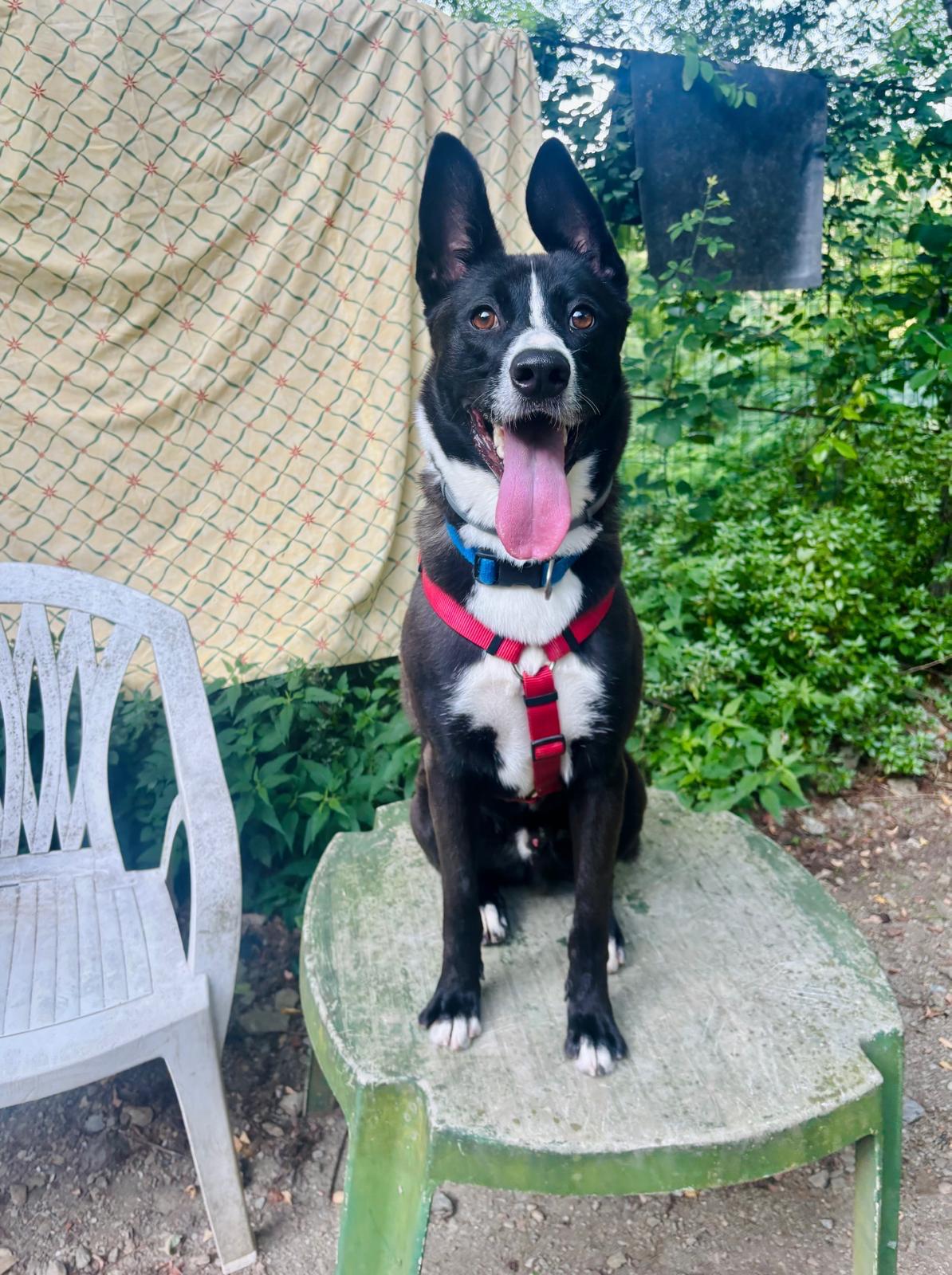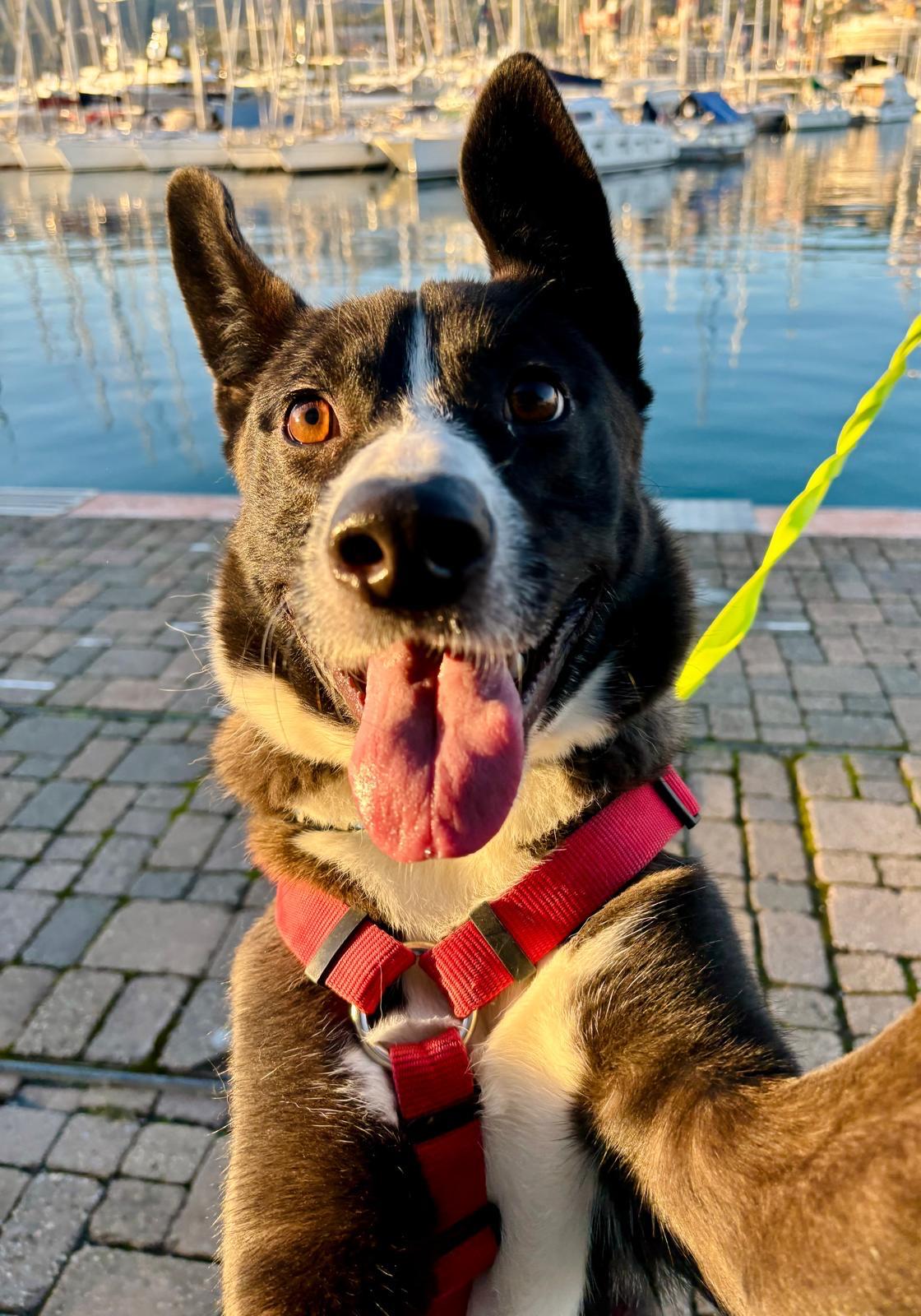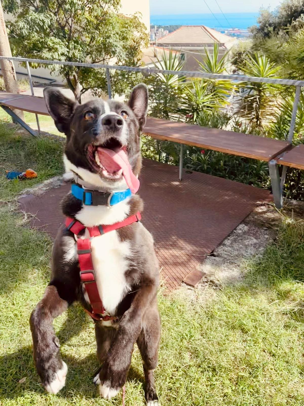 Rocky è un meticcio mix collie di neanche due anni, buono come il pane e dolcissimo con tutti. Non ti ha mai visto? Un bacino non si nega a nessuno. Un giochino nuovo? Duecento capriole di felicità. Un biscotto? Salta come un canguro.